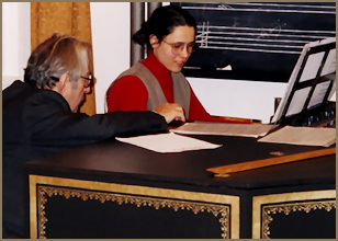 One aspect of Sebestyén's art, known primarily to those who attended his concerts, was his gift for improvisation. Whether performing as pianist or organist, on the large romantic organ in Pécs or the small ancient organ in Sion, he had the ability to exploit the resources of any instrument at his disposal in the style of his choice. His partners in improvisation included pianist Geoffrey Tozer, flutist István Matúz, soprano Laura Faragó, and bassist Aladár Pege. Special mention, however, must be made of his more than twenty-five year collaboration with István Lantos, performing compositions and improvisations for two pianos, piano four-hands, and organ four-hands. In later years they often collaborated with tenor Ernő Tálas and flutist Zoltán Gyöngyössy. These three musicians, along with actor József P. Kovács, became Sebestyén's go-to team during his last decade, always finding time to take part in his regular concerts in Budapest, Balatonlelle, and Szeged. It was thanks to their devoted friendship that he was able to continue performing during his final years of declining health.