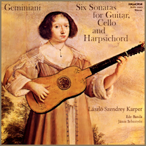 Geminiani: Sonatas for Guitar and Continuo from "The Art of Playing the Guitar" [No. 1 in C major, No. 2 in C minor, No. 3 in D major, No. 4 in D minor, No. 6 in E minor, No. 10 in G minor] – László Szendrey Karper, guitar; Ede Banda, cello