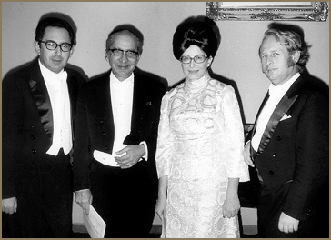 Harpsichord soloists János Sebestyén, Luciano Sgrizzi, Zuzana Růžičková, and conductor Bohdan Warchal, founder of the Slovak Chamber Orchestra (above); Růžičková and her husband, composer Viktor Kalabis (right). |