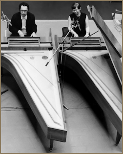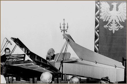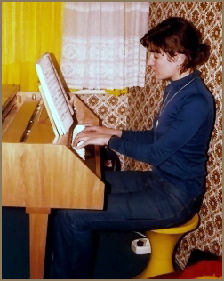 Romanian harpsichordist Ecaterina Botár at Sebestyén's Sperrhake harpsichord, late 1970s (above); Hédi Salánki at her Ammer harpsichord in Budapest, mid 1970s (right). |