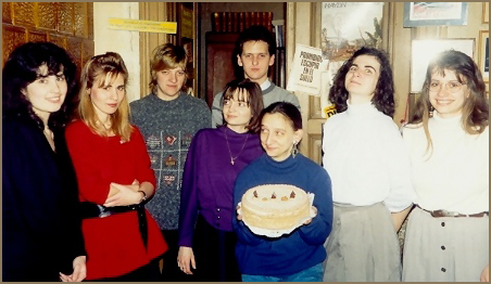 Sebestyén's harpsichord students during the early 1990s at his home: Angelika Csizmadia, Szilvia Elek, Judit Varga, Rita Papp, András Szepes, Nathalie Fodor, Erika Dallos, and Diana Pál.
