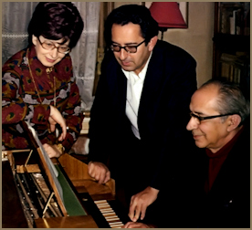 Two distinguished harpsichordists visit Sebestyén's home: Huguette Dreyfus, mid 1980s (left), and Gustav Leonhardt, 2002 (above).