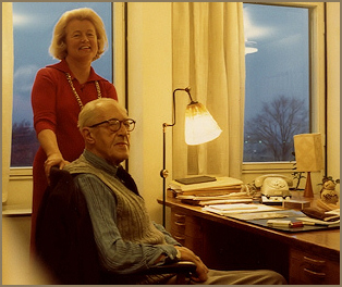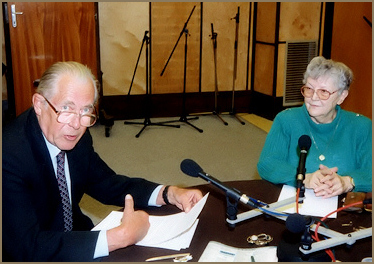 Jenő Randé, announcer from 1942 and former ambassador to Austria and Egypt, with Klára Erdei, announcer from 1948. |