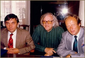 Organists Gábor Lehotka, Zsigmond Szathmáry and Joachim Grubich, in Budapest, 1983. |