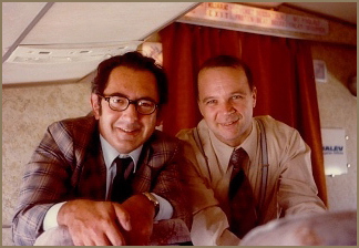 János Sebestyén and cellist László Mező on a Malev flight, mid 1970s. |