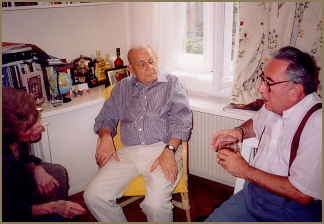 A visit with author and centenarian Belle Schulhof and artist János Kass in Budapest, 2002.
