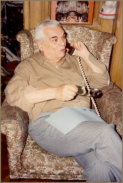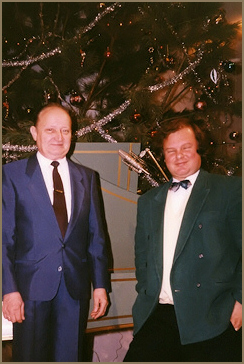 Hungarian actor Róbert Rátonyi in Sebestyén's home, early 1980s (left); János Sebestyén, Venezuelan ambassador Nelson Hernández, Veronika Bánki of the Italian Embassy in Budapest, and piano professor Ferenc Rados, whose past students included both András Schiff and Zoltán Kocsis, 1980 (above).