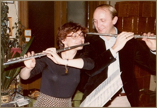 Flute duet with Bea Crivelli and Lóránt Kovács at Sebestyén's home, early 1980s. |