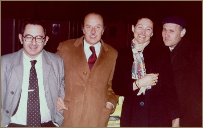 Swiss concert manager Maurice Wenger, record producer Paul Déry and his wife Setsuko, and Bea Crivelli, wife of the Swissair station manager, in Sion, early 1980s.