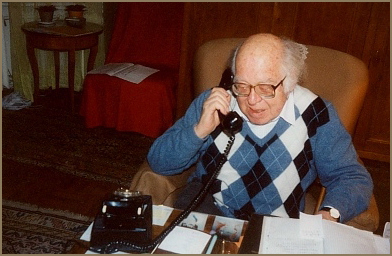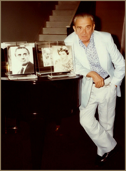 Composer Miklós Rózsa at the residence of Maddalena Mina in Santa Margherita Ligure, Italy, late 1970s.