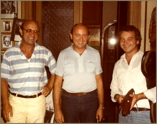 Pianist Zoltán Zorándy, flutist Lóránt Kovács, and cellist Tamás Koó at Sebestyén's home, early 1980s. |