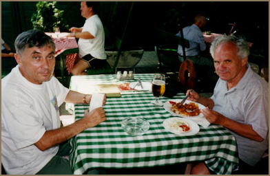 Pianist Jenő Jandó, returning from Mexico, and János Sebestyén, returning from Japan, on their way home via Frankfurt, 2002.