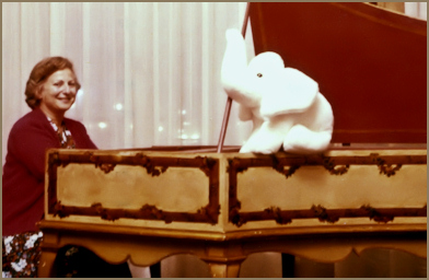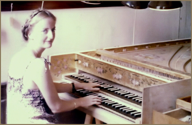 Sebestyén's harpsichord students Judit Péteri and Péter Ella in Paris for the competition (left); Huguette Dreyfus and friend at home in Paris (above).