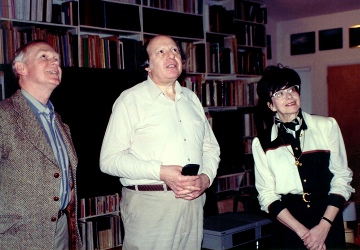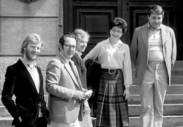 With harpsichordists David Roblou, János Sebestyén, Giedré Lukšaité-Mrázková and conductor Petr Škvor for a recording of Bach's multiple-harpsichord concertos in Prague, 1983.